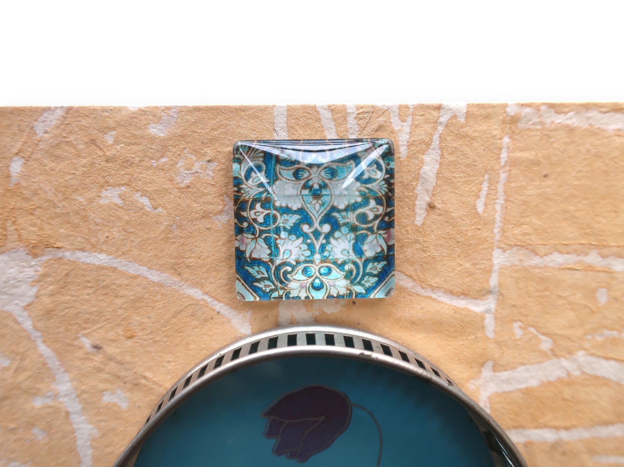 コースター(アンティーク時代不明)×染描紙(紙舗直)×キレイガラス(アラビアンガラスカボション)