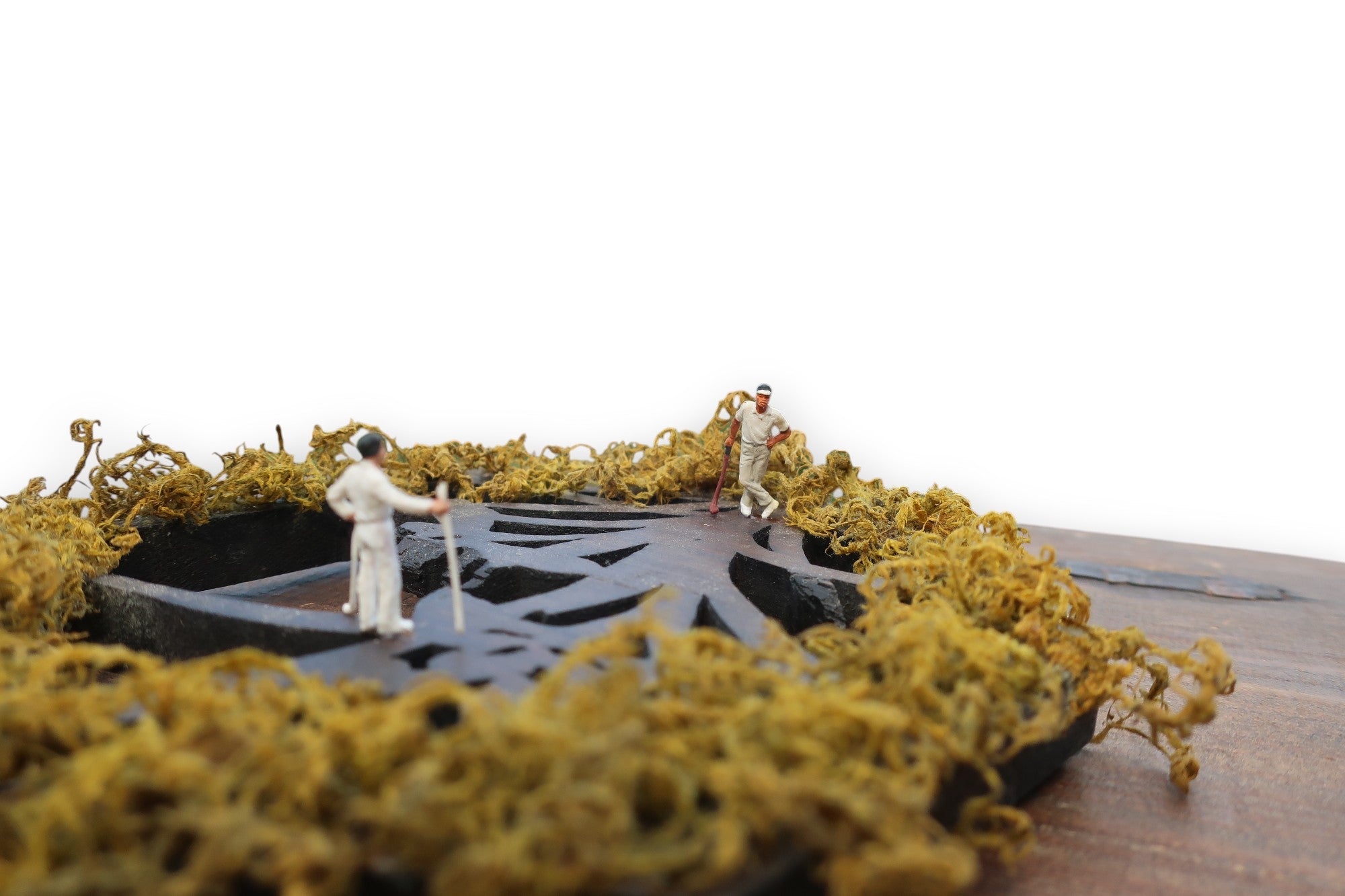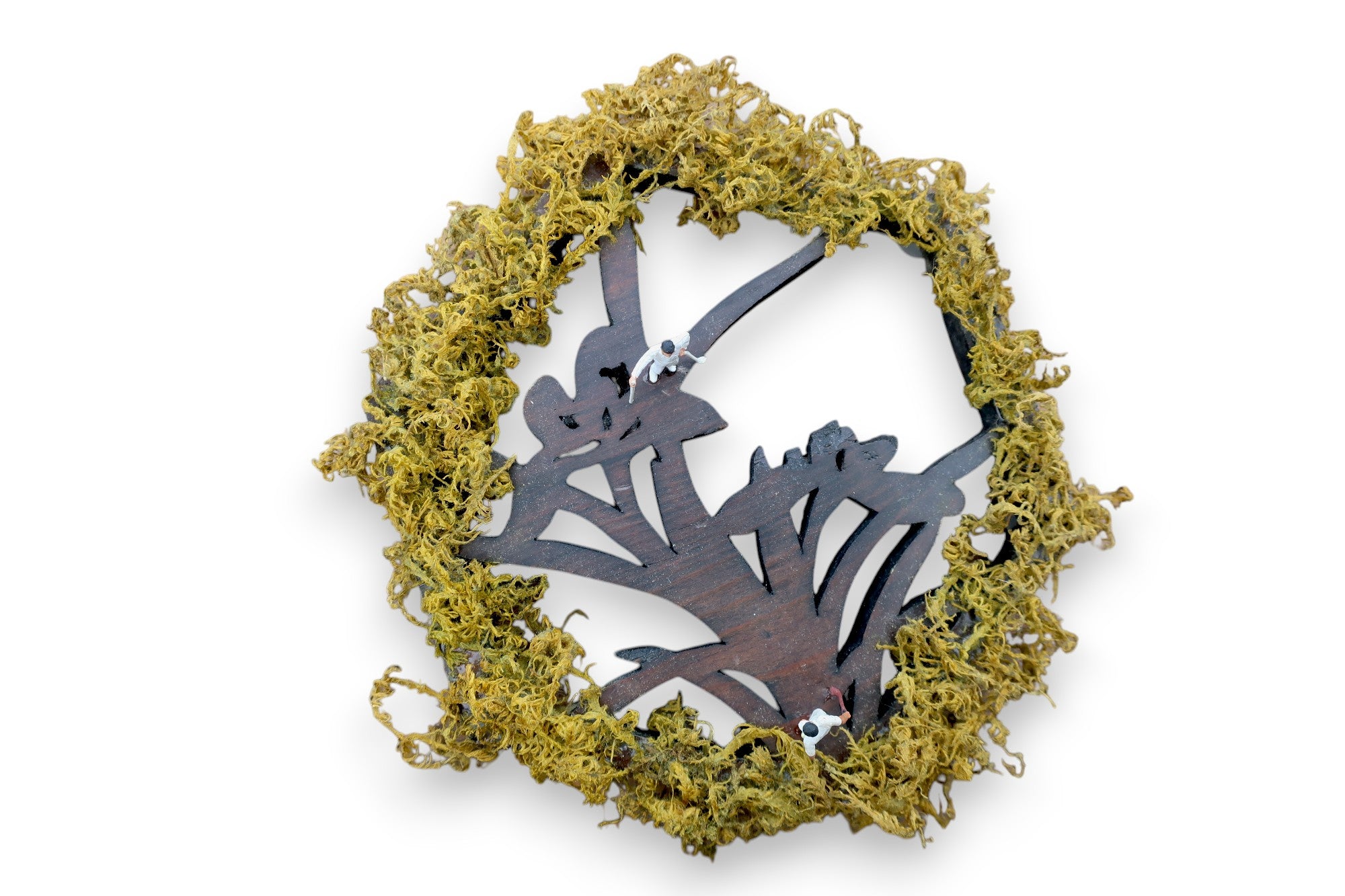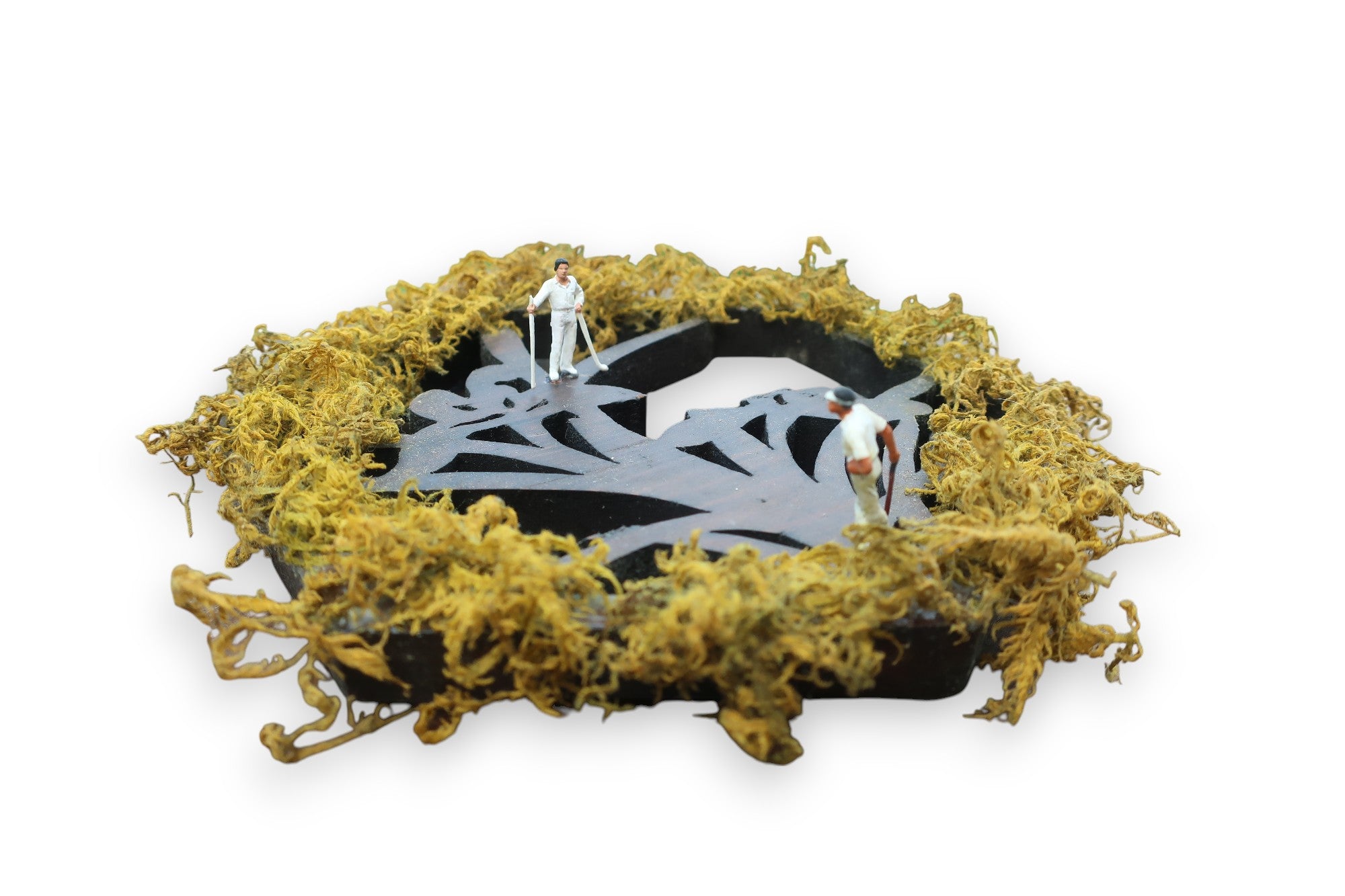 装飾台(アンティーク時代不明/木製)×ゴルファー(フィギュア)×ツヤゴケ(本物の苔を特殊加工)